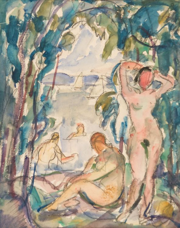 Otto Weil, Badende am Ammersee, o. J., Bleistift, Aquarell auf Papier, 27 x 22 cm, Privatsammlung