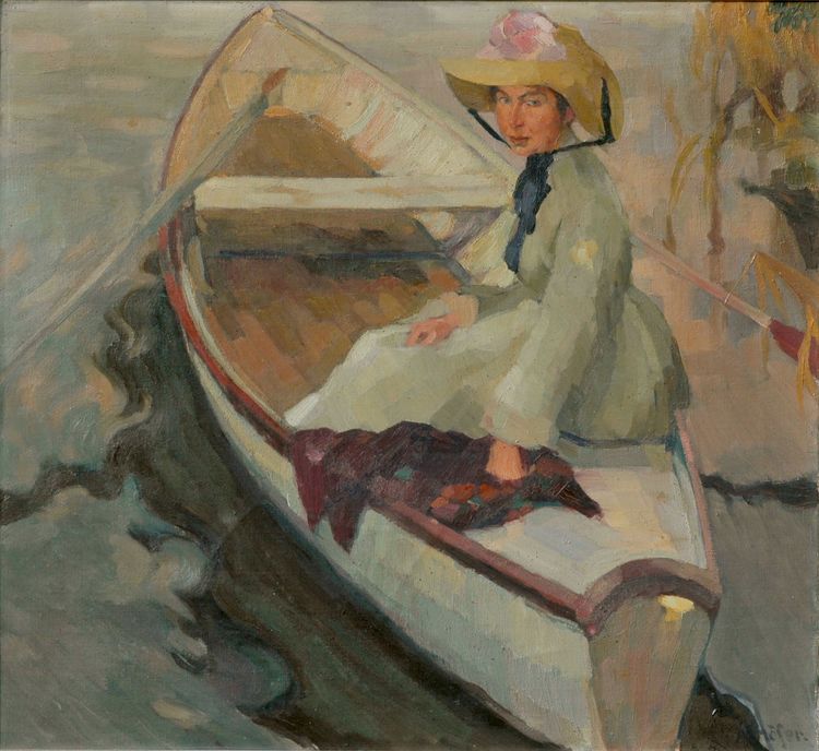 Adolf Höfer, Frau Kayser im Kahn, o. J., Öl auf Leinwand, 80 x 87 cm, Privatbesitz