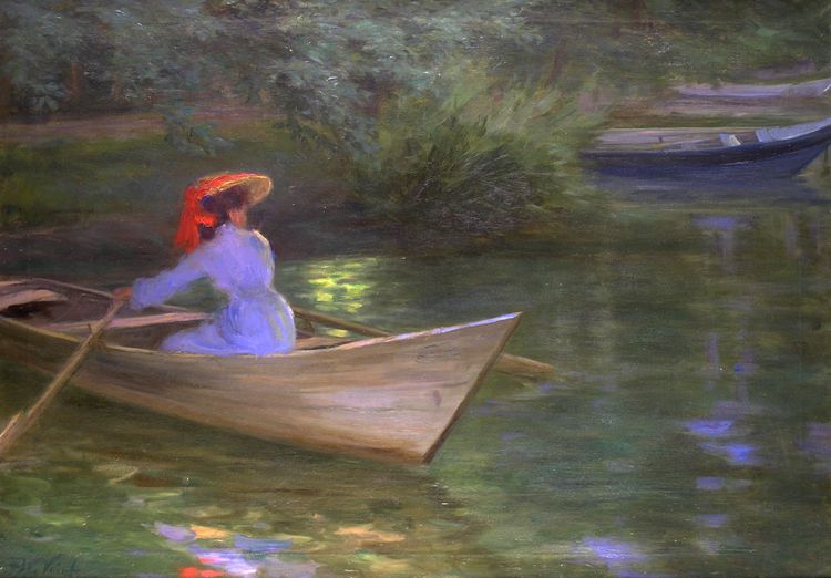 Franz Wilhelm Voigt, Dame mit Kahn, um 1910, Öl auf Leinwand, 70 x 98 cm, Privatbesitz
