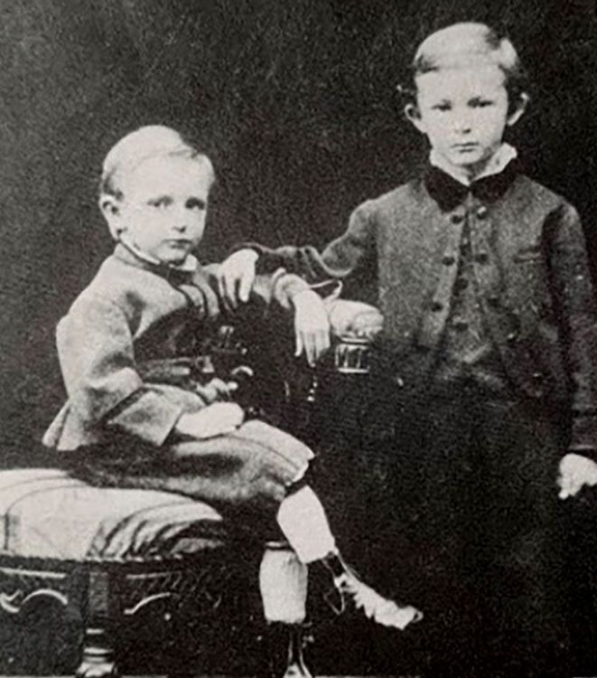 Erich Erler, links sitzend und Fritz Erler, rechts stehend, um 1873