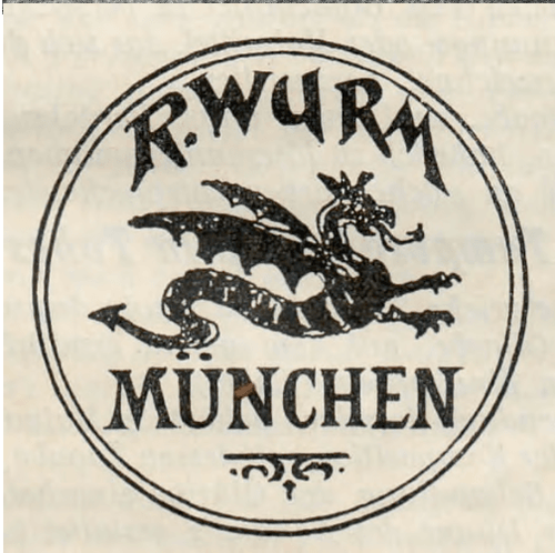 Firmenzeichen R. Wurm, München, Preisliste XVIII, S. 7 (um 1906/07)