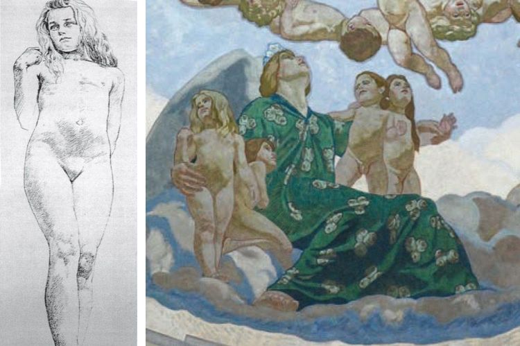 Walter Georgi, Vorzeichnung für den Engel, Domkuppel St. Blasien, o. J., Privatsammlung