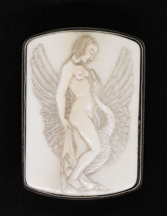 Hanna Weil, Leda mit dem Schwan, Zigarettenetui, 1920er Jahre, Basrelief, Elfenbein, Silber, Maße unbekannt, Privatsammlung, © Foto: Randall Cook