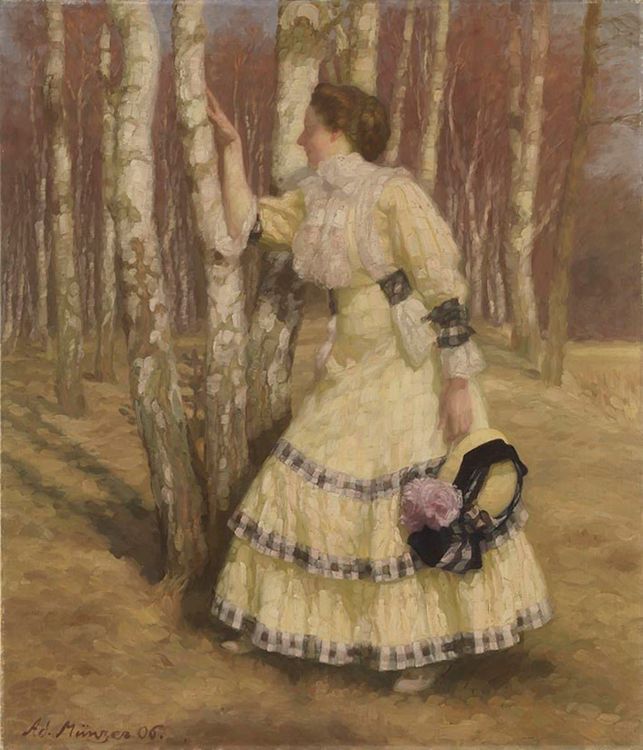 Adolf Münzer, Dame im Birkenwald, 1906, Öl auf Leinwand, 211 x 181,5 cm, Bayerische Staatsgemäldesammlungen - Neue Pinakothek München, CC BY-SA 4.0